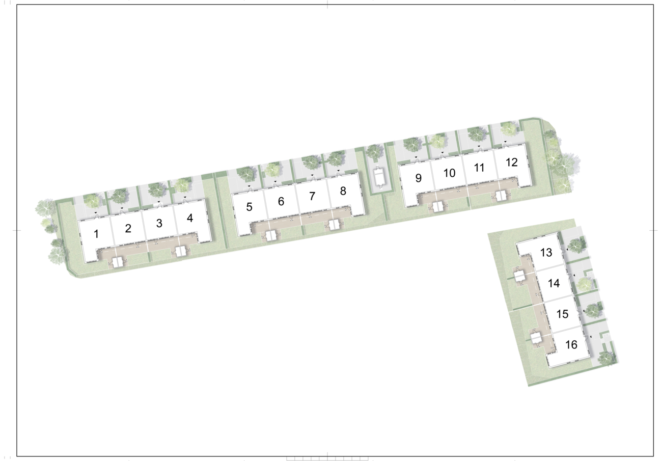 Nyproducerat radhus i markplan med trädgård, två sovrum, öppen planlösning och parkering utanför – Bo bekvämt nära stan.