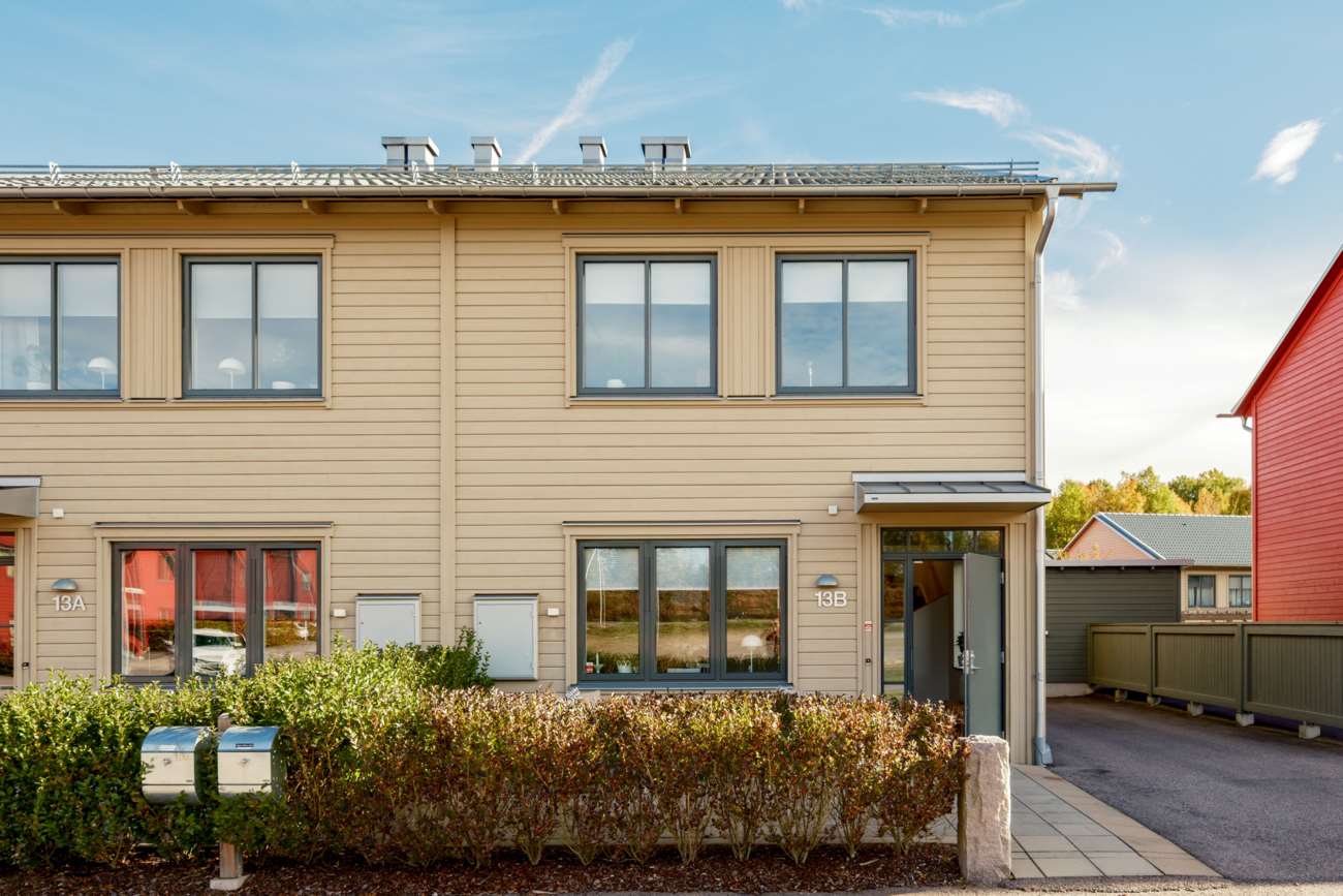 Välkommen till Bredvik till det här moderna bostadsrättsradhuset med fint läge på baksidan. Här bor du med hög standard samt flera bekvämligheter i hushållet. Hela entréplan har behaglig golvvärme. Trädäck med tillhörande gräsyta hittar vi i österläge. Bostaden rymmer två badrum och tre sovrum på övre plan i gedigen storlek.