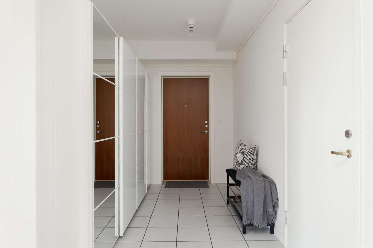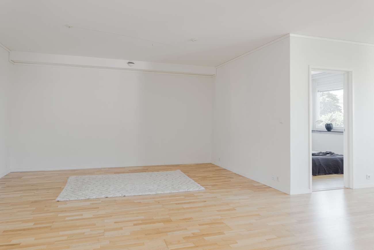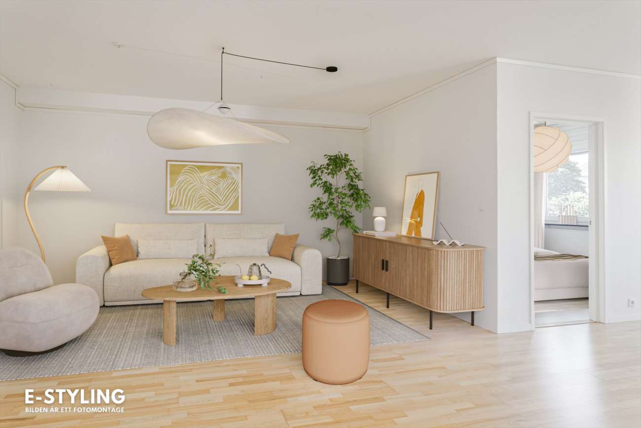 Här finns fyra rymliga sovrum, samtliga med god förvaring, där ett av dem dessutom har egen klädkammare inredd med mörka garderober. Det centralt placerade vardagsrummet binder samman bostadens olika delar och erbjuder gott om plats för både soffgrupp och extra möbler, en perfekt yta för umgänge och familjeliv. Köket är både funktionellt och trivsamt, utrustat med spis, diskmaskin, kyl och frys. Intill ryms även en stor matplats där det finns plats för vänner och familj runt bordet.