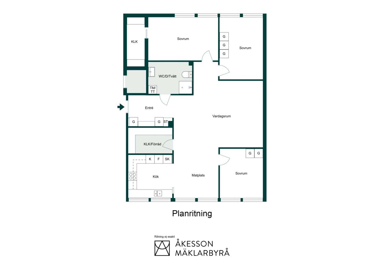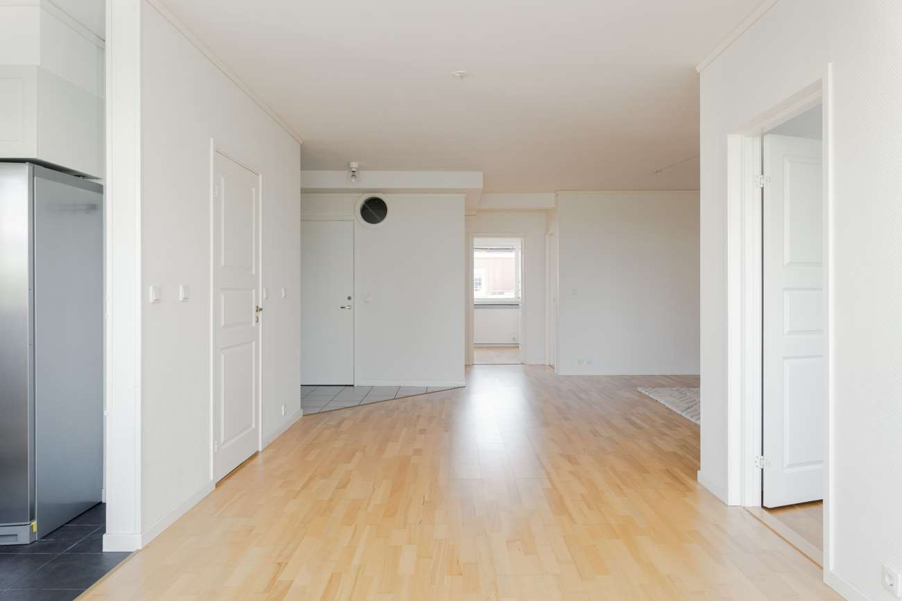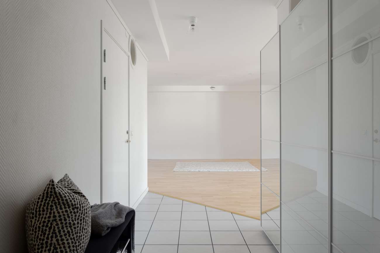 Här finns fyra rymliga sovrum, samtliga med god förvaring, där ett av dem dessutom har egen klädkammare inredd med mörka garderober. Det centralt placerade vardagsrummet binder samman bostadens olika delar och erbjuder gott om plats för både soffgrupp och extra möbler, en perfekt yta för umgänge och familjeliv. Köket är både funktionellt och trivsamt, utrustat med spis, diskmaskin, kyl och frys. Intill ryms även en stor matplats där det finns plats för vänner och familj runt bordet.