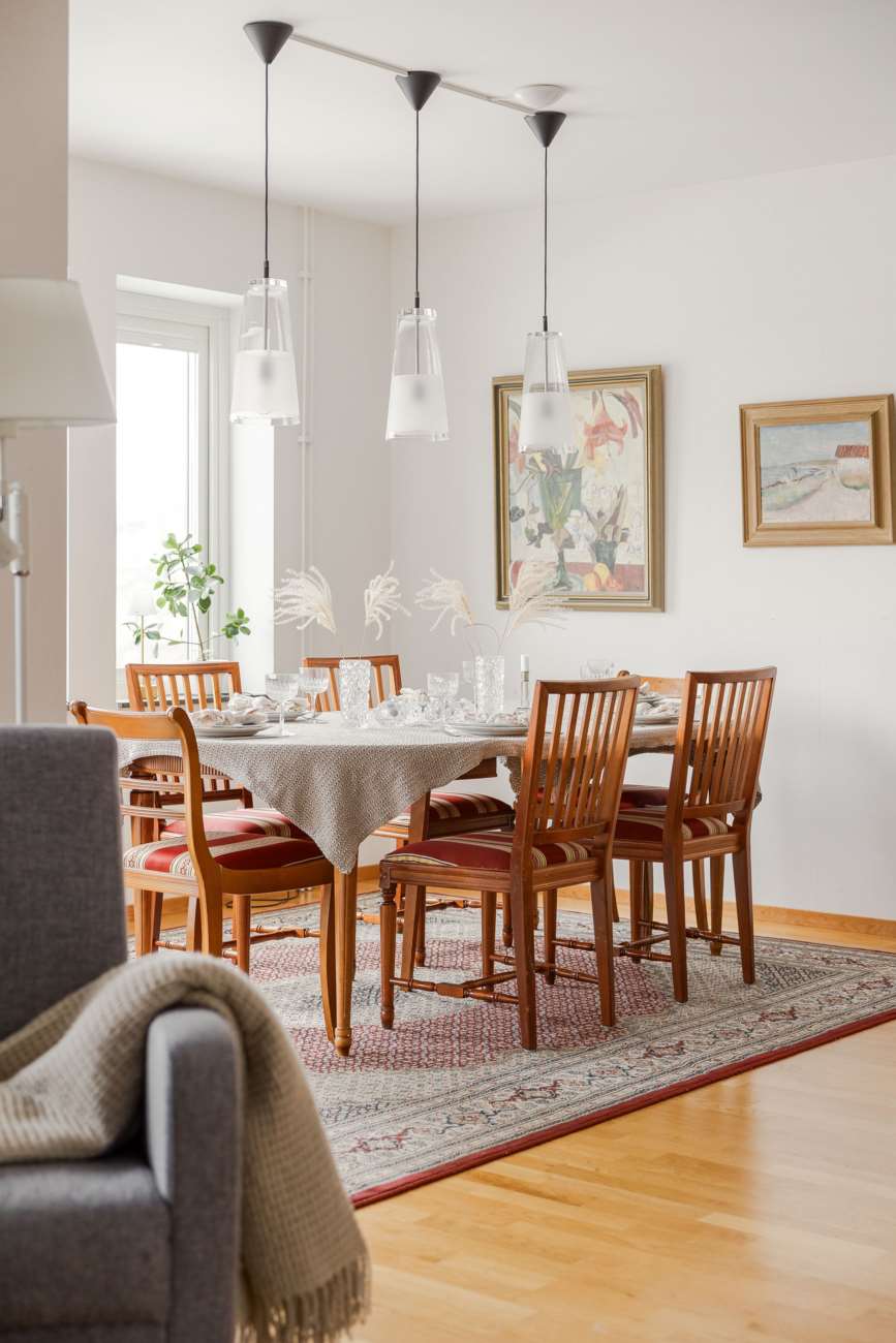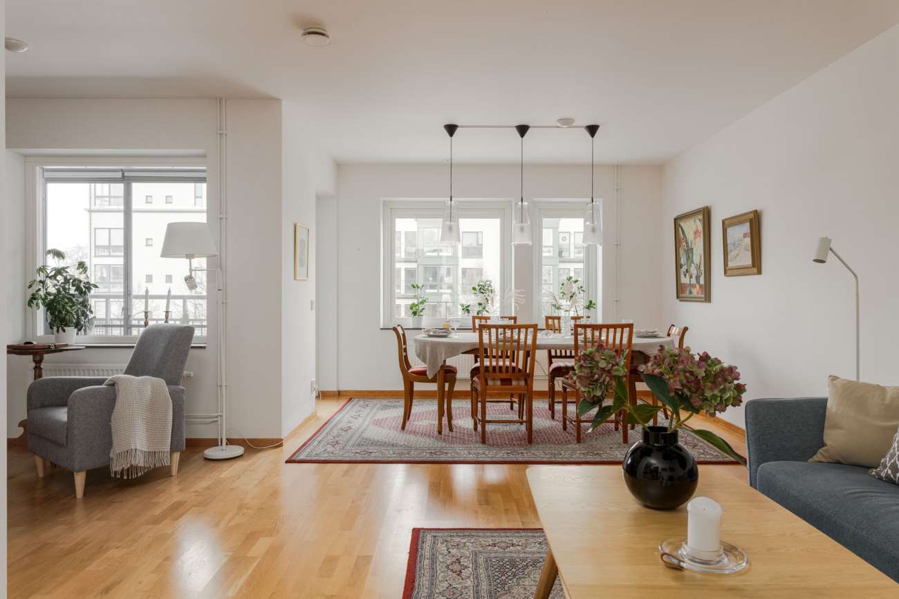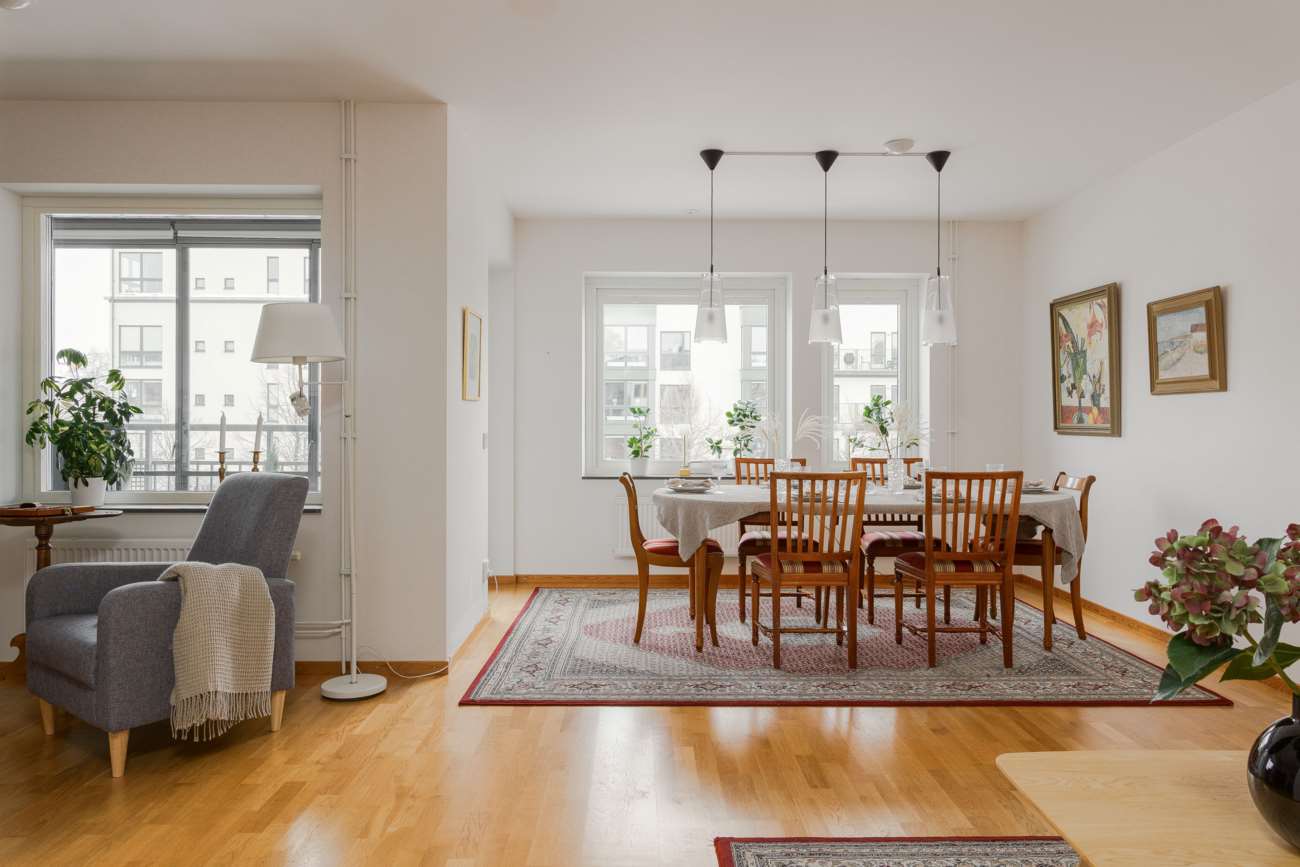 Bostaden präglas av generösa ytor och en genomtänkt planlösning som passar såväl familjen som den som önskar gott om utrymme. I en stabil förening med god ekonomi, övernattningslägenhet och garageplatser bor du här tryggt och bekvämt över tid.