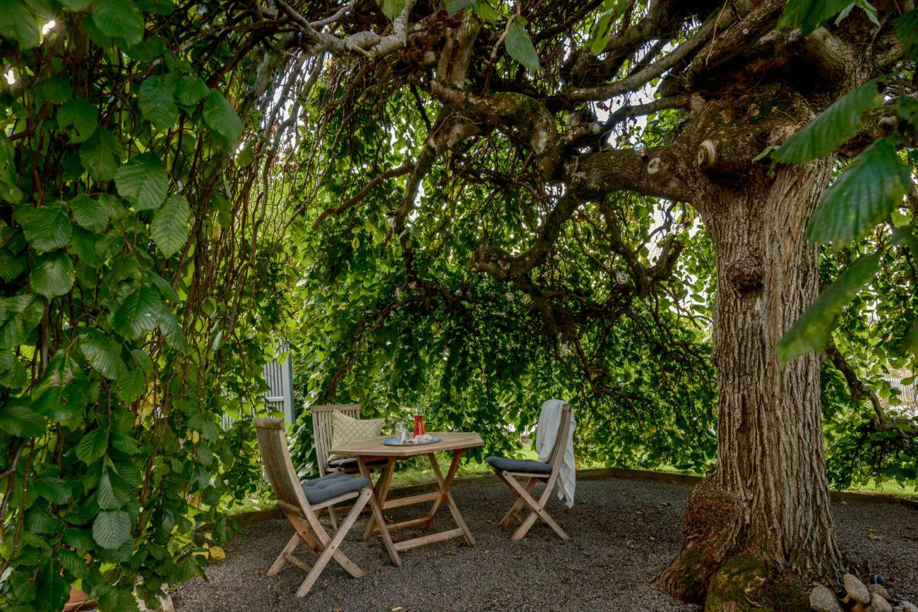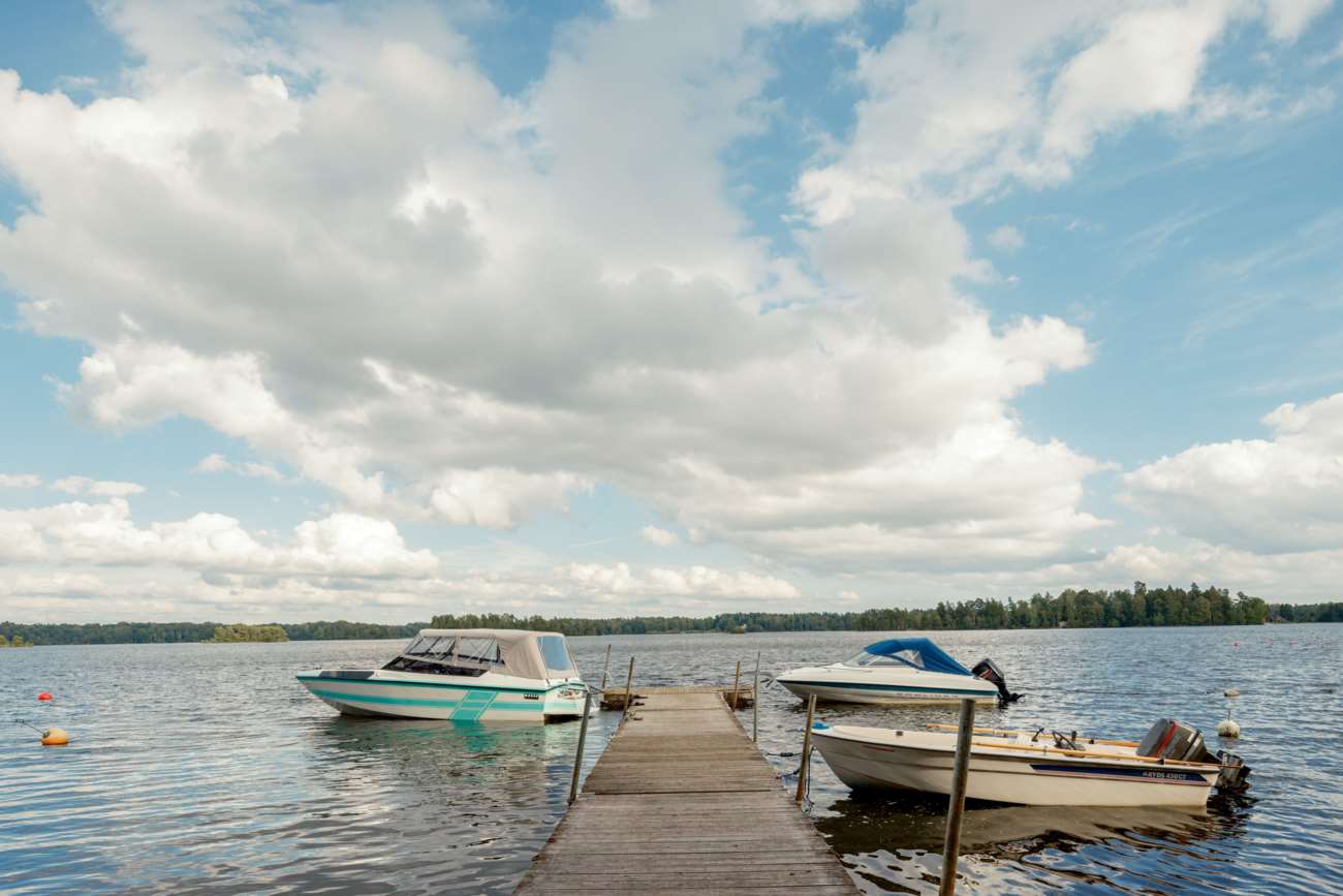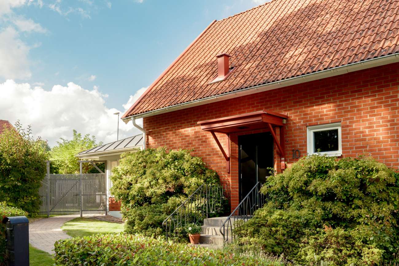 Till huset hör garage med garageport samt en mysig och insynsskyddad trädgård. Den stenlagda uteplatsen skapar en lättskött utemiljö med plats för både vardag och sommarens middagar. Till bostaden hör en båtplats i Helgasjön i Fridhemsvägens bryggförening (ligger en kort promenad från huset)..