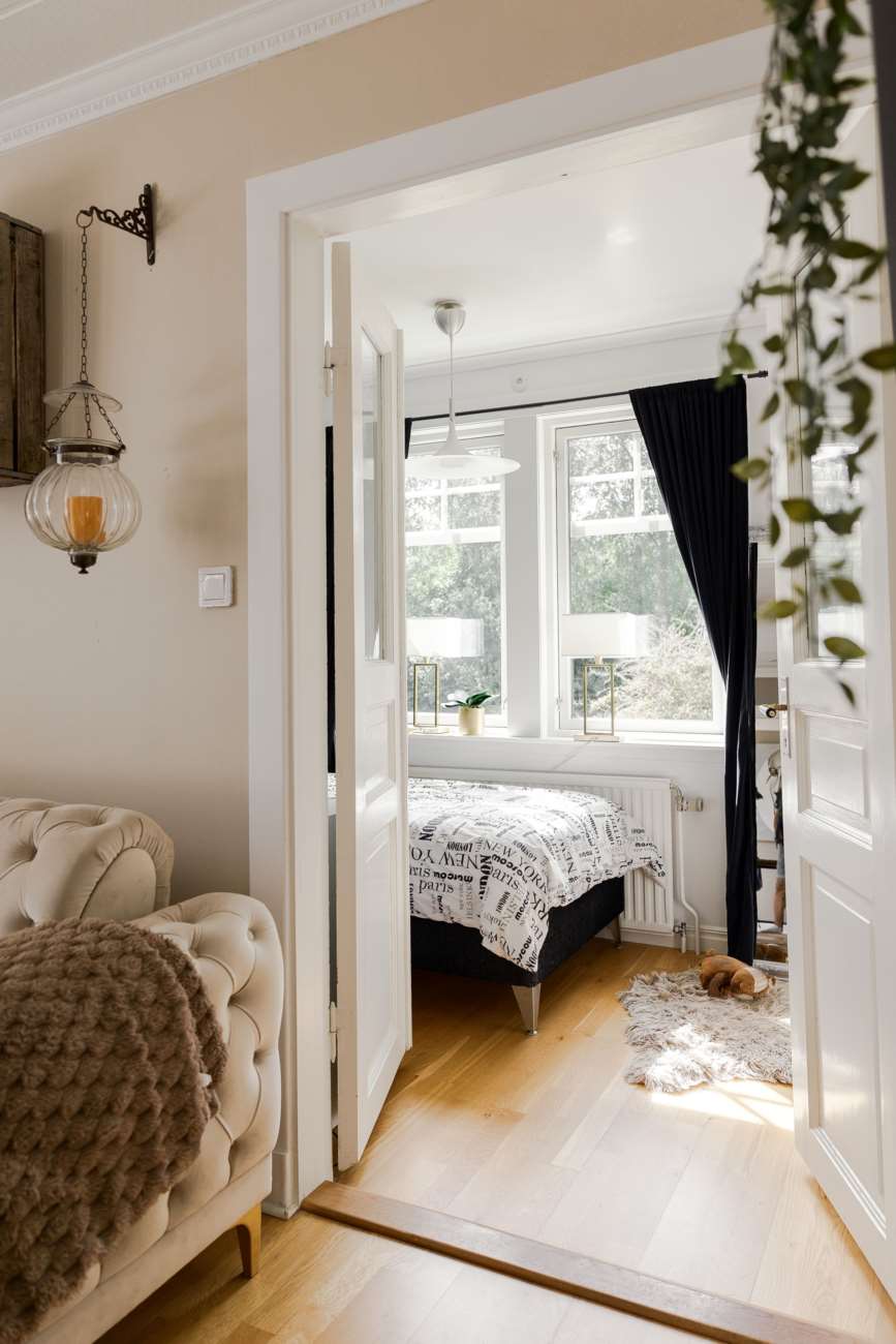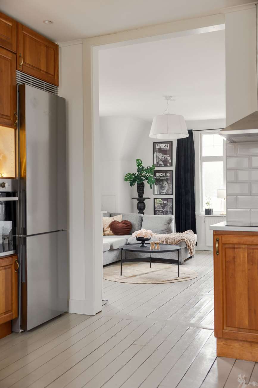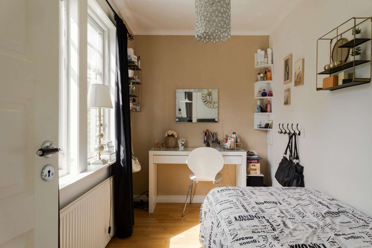 På övre plan finns även ett mindre sovrum samt ett extra kök, vilket skapar flexibilitet för den som önskar exempelvis generationsboende, tonårsdel eller uthyrningsmöjlighet. Från ett av rummen nås den generösa balkongen – en fin förlängning av bostaden under årets varmare månader.