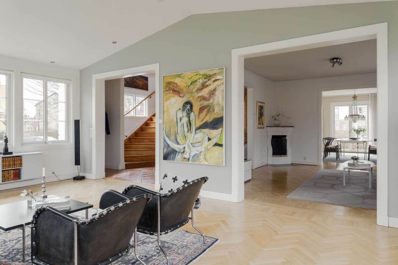På omtyckta Öster, med ett av Växjös mest centrala villalägen, ligger denna välskötta vitputsade villa från 1935. Ett vackert hem där originaldetaljer har bevarats och kompletterats med genomtänkta renoveringar. Planlösningen är generös och sammanhängande, med tre sällskapsrum i fil, tre sovrum, två badrum och uteplatser i skyddat söderläge. Dessutom finns en välplanerad källarvåning med badrum, tvättstuga, gästrum och hobbyrum.
