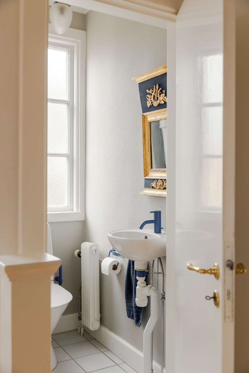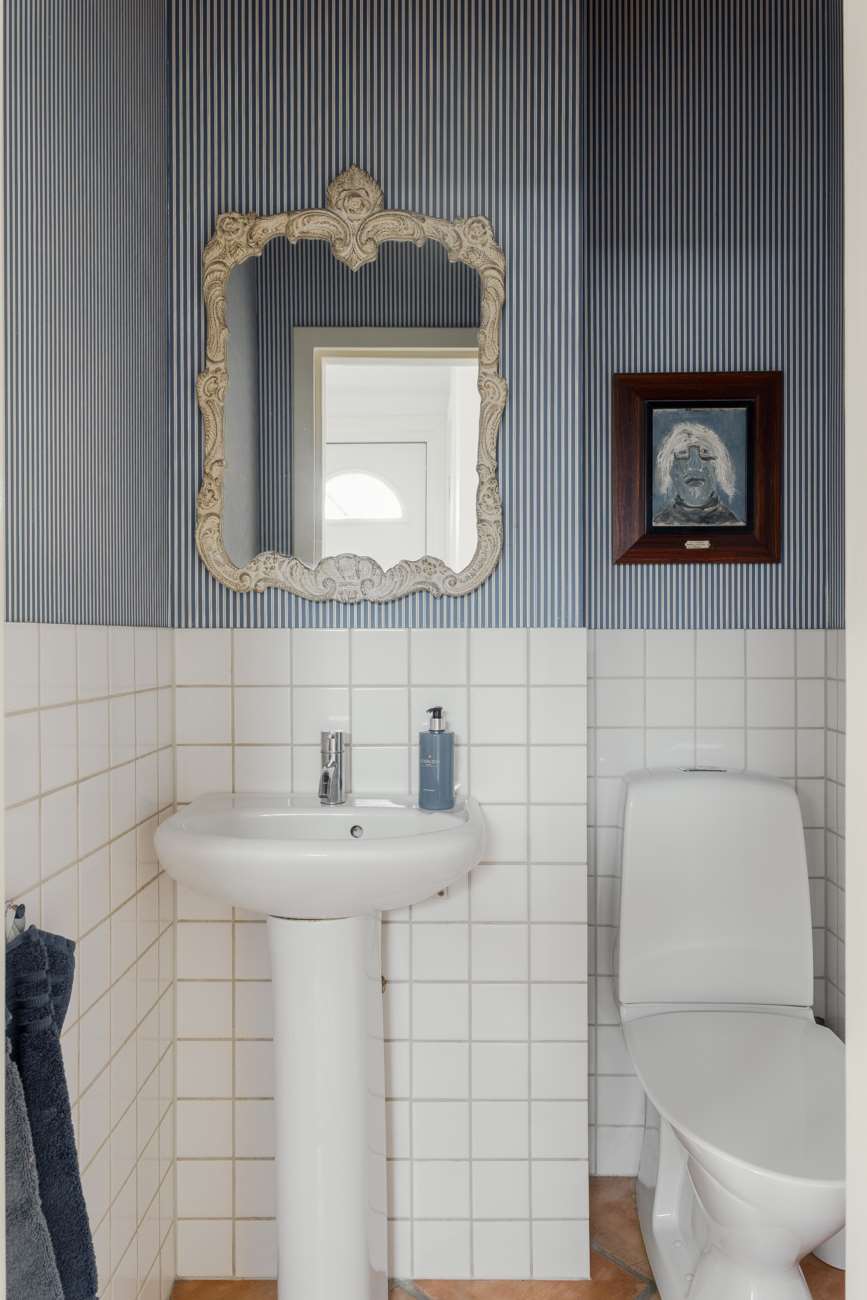 Entrén öppnar upp till en rymlig hall med gott om plats för avhängning. Här finns även en gäst-WC.