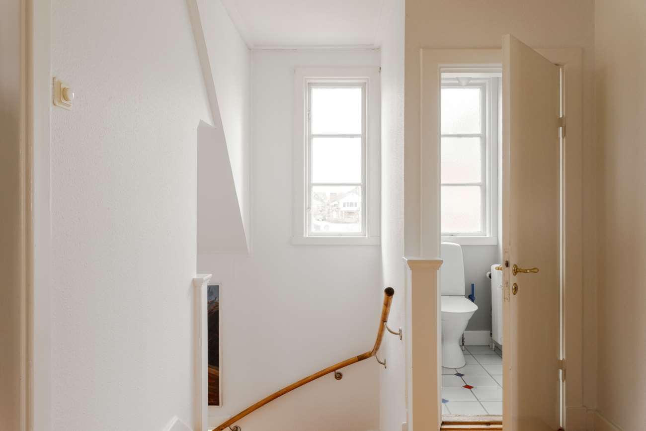 En trappa upp möts du av en övre hall med tillgång till tre sovrum samt en separat WC och badrum..