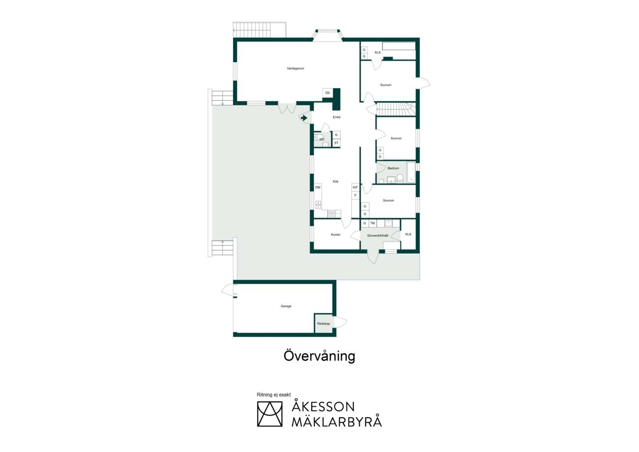 Huset har ett arbetsrum som även kan användas som sovrum. Därifrån nås tvättstuga med groventré som förenklar vardagens flöde, särskilt för den aktiva familjen eller den som gärna rör sig mellan inne och ute.