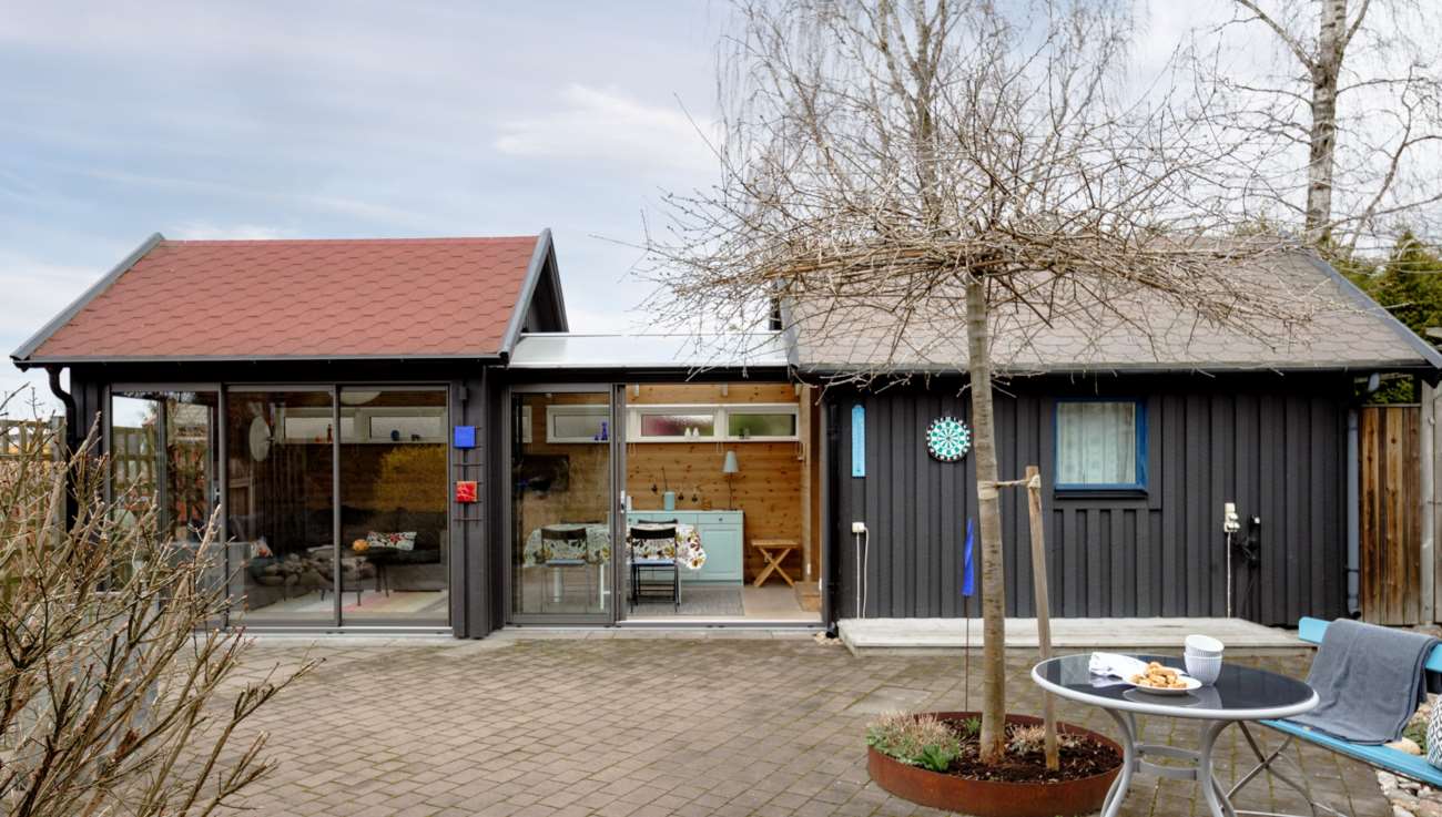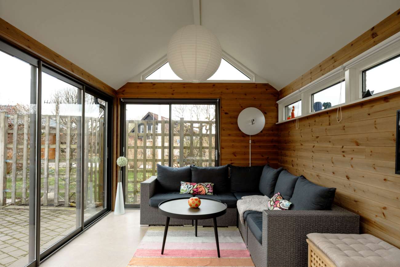 Uthus byggt på 1990-talet med tillbyggt uterum 2017.