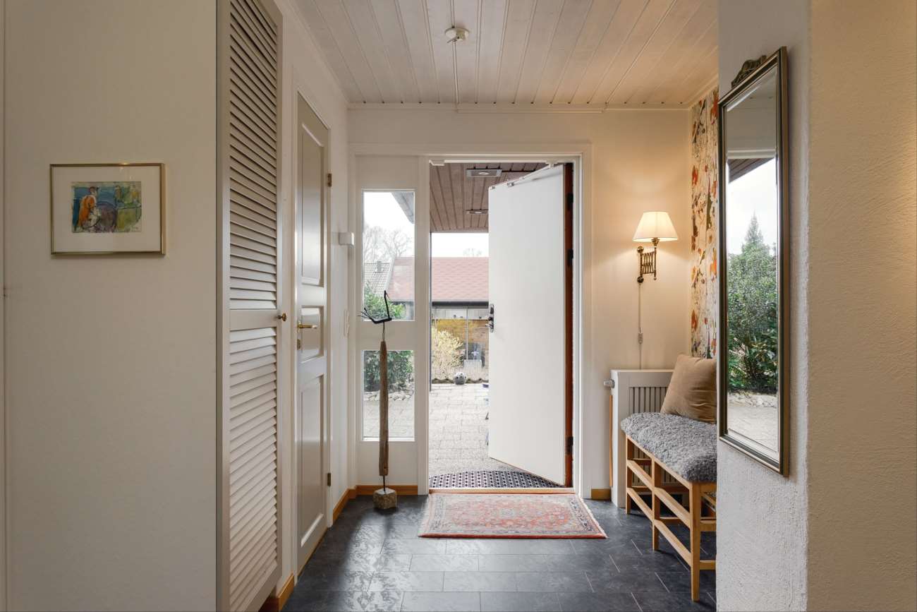 Entréplanet är välkomnande och varje val känns genomtänkt. Parkettgolv löper genom hela våningsplanet. Det skapar ett lugnt och sammanhållet intryck, där rummen binds ihop på ett naturligt sätt.